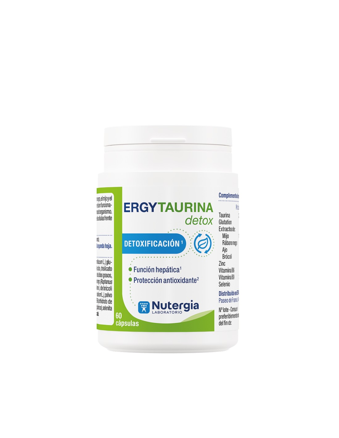 ERGYTAURINA Detox asocia el rábano negro, el mijo, el brócoli al ajo, que ayuda a mantener el buen funcionamiento hepático y a eliminar las toxinas del organismo. El zinc contribuye a proteger las células frente al estrés oxidativo